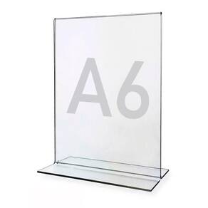 Display expositor T A6 transparente porta papel, podendo usar frente e verso (folha A6). .