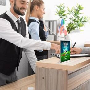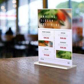 Modo de uso: mesa, balcão, vitrines, estantes ou outros locais que desejar comunicar.