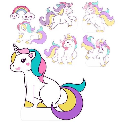 Display Festa Unicornio 1 Totem 57Cm E 6 Displays Kit display de chão, totem unicórnio com 7 peças - 1 totem de chão com 57cm altura x 56cm largura - 6 display de mesa com 22cm no seu lado maior Material : madeira mdf 3mm com recorte a laser - enviamos para todo brasil - impressão com qualidade e imagens em alta definição - acabamento perfeito : Os display são simplesmente lindos, segue junto a base de apoio para Que fiquem em pé com facilidade e segurança. Ean: 200100101243