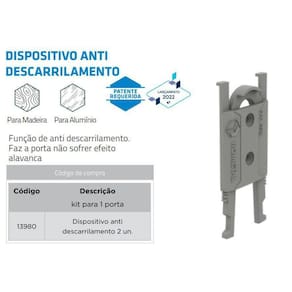 Dispositivo Anti-Descarrilamento Para Armário Porta De Correr Dispositivo Anti Descarrilamento RometalFunção de anti-descarrilamento. Faz a porta não sofrer efeito alavanca. Compatível com todas as guias e amortecedor do mercado. exceto Guias Inteligentes - os que pressionam a lateral do trilho por mola .Características:- Material: Plástico- Tipo de porta para ser aplicado: Somente portas de Correr- Utilizado em: Guarda Roupas ou Armarios de Correr em geral- Vendido em par 2 peças - Espessura: 3mm Ean: 7908202633435