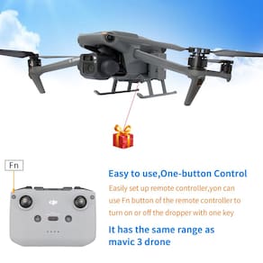 Especialmente projetada para drone DJI Mavic 3, Mavic 3 Classic, Mavic 3 Pro, Mavic 3 Cine - Especialmente projetada para drone DJI Mavic 3, Mavic 3 Classic, Mavic 3 Pro, Mavic 3 Cine - Fácil de controlar---Operação com um botão através do controle remoto, o dispositivo de queda tem o mesmo alcance do seu drone Mavic 3. Permite que você coloque itens dentro de qualquer intervalo que o drone possa alcançar (não excedendo o peso máximo de carga). Observação: ao pendurar itens, preste atenção ao comprimento do cordão. Recomenda-se não usar um cordão longo - Parâmetro do produto --- Carga máxima: 500 g, capacidade da bateria embutida: 150 mAh, tempo de espera: cerca de 12 horas, tempo de carregamento automático: 1,5 horas, tempo de ligar ou desligar (carga completa uma vez): 500 - Muito fácil e rápido de montar --- Apenas alguns passos simples para instalar - O que você recebe --- 1 dispositivo de queda, 1 cabo de carregamento USB-c (Observação: drone, controle remoto e outros itens de demonstração não incluídos)