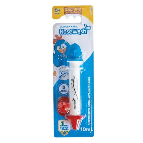 NoseWash é o primeiro dispositivo desenvolvido e fabricado no Brasil especialmente para lavagem nasal em bebês e crianças! Disponível em apresentações de 10mL e 20mL, NoseWash contém diversos modelos para todas as idades! DIVERSÃO Com uma proposta inovadora, NoseWash contém personagens lúdicos em miniatura no próprio dispositivo, proporcionando um momento mais divertido e reduzindo o medo das crianças ao lavar o nariz. Agora a parte mais difícil vai ser escolher o personagem! SEGURANÇA NoseWash contém dois adaptadores nasais que protegem o nariz de forma eficiente. Fabricado em material firme e confortável, os adaptadores nasais não contêm nenhum tipo de material flexível já que criança gosta de colocar objetos na boca e isso representaria um risco de engasgo. E para também evitar qualquer risco nesse sentido, desenvolvemos nossos adaptadores com uma aba de segurança, formando uma barreira física caso este objeto vá a boca. EFICIÊNCIA SEM BORRACHA Após alguns anos em desenvolvimento, lançamos o dispositivo NoseWash fabricado sem nenhum composto de borracha dentro do cilindro. Geralmente a borracha é utilizada para tentar melhorar a fluidez do dispositivo, por isso é muito comum em seringas hospitalares e de injeção. A presença da borracha, porém, traz um ambiente favorável ao acúmulo de líquidos, o que junto com secreções nasais formam um ambiente ideal para o surgimento de fungos. NoseWash não precisa de borracha já que foi desenvolvido especialmente para lavagem nasal e a fluidez ocorre de forma natural, suave e efetiva. Sem borracha, sem fungos! Marca: Nosewash