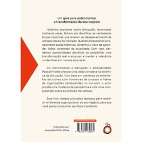 Um guia para potencializar a transformação do seu negócio Histórias populares sobre disrupção, recontadas inúmeras vezes, falham em identificar as verdadeiras forças implícitas que levaram ao desaparecimento de antigas líderes do mercado. Quando entendemos erroneamente essas histórias, corremos o risco de aprender lições incorretas da atualidade. Com isso, perdemos oportunidades decisivas de possibilitar uma transformação real e alcançar e manter a relevância sustentável em nossas empresas. Em "Disrompendo a disrupção", o empreendedor Pascal Finette oferece uma visão completa da dinâmica da disrupção. Com base em centenas de entrevistas exclusivas com inovadores de sucesso e líderes de organizações estabelecidas no mercado, o autor propõe uma mudança de perspectiva e uma nova compreensão sobre as práticas disruptivas. Este livro fornece princípios testados para redefinir a liderança organizacional de seu negócio, a fim de que você possa conquistar seu futuro preferido. "Pascal Finette acertou em cheio. Isso não surpreende porque, quando se trata de disromper a disrupção, ninguém que conheço trabalhou mais sobre o tema do que Pascal, e a sua experiência comprova isso. Escrito de forma brilhante e repleto de exemplos esclarecedores, comece sua leitura aqui se você estiver considerando fazer mudanças disruptivas" — William Pasmore, professor de psicologia organizacional e social na Universidade de Colúmbia "Um guia lúcido, perspicaz e prático para ajudá-lo a avaliar possíveis futuros e navegar em direção ao resultado ideal. Leitura essencial e agradável para todos os líderes neste mercado volátil e incerto" — Riaz Shah, sócio e líder global de aprendizagem na empresa de consultoria EY