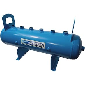 Distribuidor de Ar Manifold 06 saídas DH25-6 (mod.1) com 02 conexões nas calotas, 01 de 2'' e 01 de 1". 06 saídas superior de 1". Luvas laterais para acessórios de segurança (manômetro e válvula de segurança) de 1/4'' e luva inferior de 1/4'' (dreno). Pressão máxima de trabalho 12,3kg/cm. Dimensões; Altura: 350 mm, Comprimento total: 1030 mm, Diametro corpo: 180mm, Altura total com alça de movimentação: 430 mm. Acompanha documentação com certificado de teste hidrostático. **Este anúncio não contempla os acessórios de segurança (manômetro, válvula de segurança e dreno - necessários para uso) - podendo ser adquiridos separadamente.