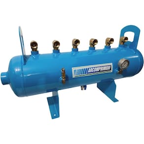 Distribuidor de Ar para Mineração DH25-6 (mod.1) com 02 conexões nas calotas, 01 de 2'' e 01 de 1". 06 saídas superior de 1". Luvas laterais para acessórios de segurança (manômetro e válvula de segurança) de 1/4'' e luva inferior de 1/4'' (dreno). Pressão máxima de trabalho 12,3kg/cm. Dimensões; Altura: 575 mm, Comprimento total: 1030 mm, Diametro corpo: 250 mm, Altura total com alça de movimentação: 575 mm. Acompanha documentação com certificado de teste hidrostático. Acompanha os acessórios de segurança manômetro, válvula de segurança e dreno Manual - necessários para uso. Acrescentado cotovelo Macho-Fêmea de 1'' NPT.