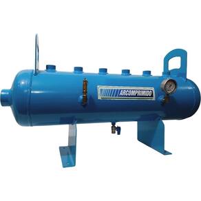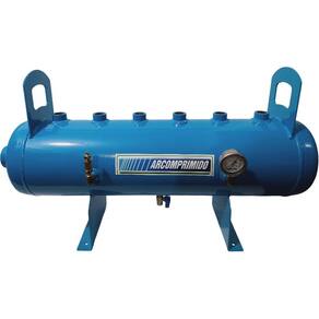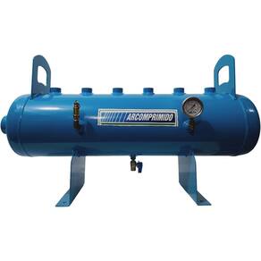 Distribuidor Pneumático DH25-6 (mod.1) com 02 conexões nas calotas, 01 de 2'' e 01 de 1". 06 saídas superior de 1". Luvas laterais para acessórios de segurança (manômetro e válvula de segurança) de 1/4'' e luva inferior de 1/4'' (dreno). Pressão máxima de trabalho 12,3kg/cm. Dimensões; Altura: 350 mm, Comprimento total: 1030 mm, Diametro corpo: 180 mm, Altura total com alça de movimentação: 430 mm. Acompanha documentação com certificado de teste hidrostático. Acompanha os acessórios de segurança manômetro, válvula de segurança e dreno Manual - necessários para uso.