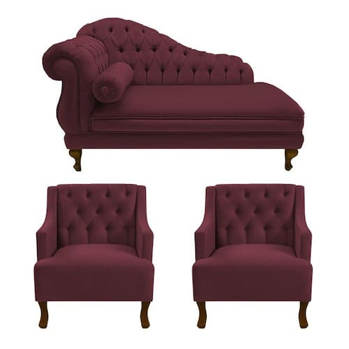 Divã Larissa 150 cm e 2 Poltronas Genesis Suede Vermelho Bordo - LM DECOR