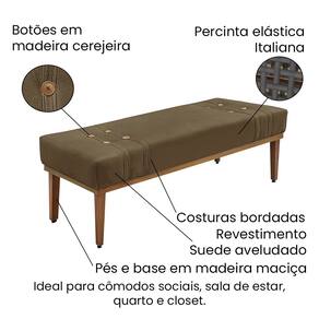 O Divã Recamier Banco Gênova de 90cm é uma peça de mobiliário elegante e funcional, projetada para adicionar um toque de sofisticação e conforto ao seu ambiente. Sua estrutura é construída com madeira de eucalipto reflorestada, garantindo durabilidade e sustentabilidade ambiental. Os pés e a base são feitos de madeira maciça, proporcionando estabilidade e robustez à peça. A densidade da espuma, classificada como D23, assegura um suporte confortável para o usuário, ideal para momentos de relaxamento e descanso. O tecido em Suede em tom Caramelo confere um acabamento suave e luxuoso, adicionando um toque de requinte ao design. Os diferenciais incluem botões em madeira cerejeira, que acrescentam um charme adicional, e costura bordada, detalhes que evidenciam a atenção aos acabamentos e o cuidado com os detalhes. Com uma capacidade de suportar até 120 kg, o Divã Recamier Banco oferece conforto e segurança para diferentes usuários. Quanto ao uso, o Divã Recamier Banco pode ser utilizado em diversos ambientes, desde o quarto como um elegante banco no pé da cama, até a sala de estar como um sofá auxiliar ou até mesmo em espaços comerciais, como recepções ou salas de espera, adicionando conforto e estilo onde quer que esteja. Seja como um elemento decorativo ou como um lugar para relaxar, este móvel é uma escolha versátil e elegante para qualquer ambiente.