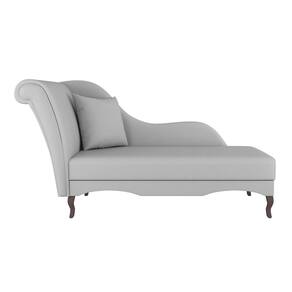 Divã Recamier Chaise Longue Valentina Clássico com Pés de Madeira Veludo Cinza Claro - Desk Design