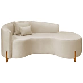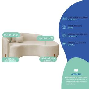 Divã Recamier Curvo Sala De Estar Recepção Inglaterra 200cm Pés Madeira Lado Direito Linho Bege