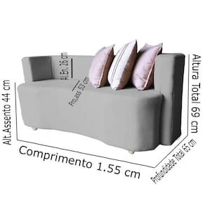 Medidas: Altura total: 69 cm Altura do encosto: 26 cm Altura do assento: 44 cm Comprimento total: 155 cm Profundidade total: 65 cm