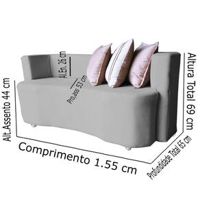 Medidas: Altura total: 69 cm Altura do encosto: 26 cm Altura do assento: 44 cm Comprimento total: 155 cm Profundidade total: 65 cm