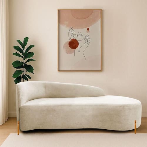 Divã Recamier Orgânico França 140cm Lado Dir Pés De Madeira Bouclé Bege