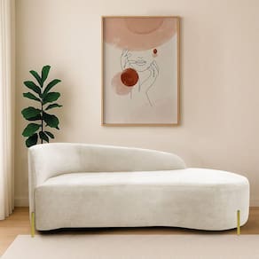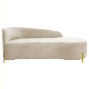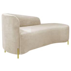 Divã Recamier Orgânico França 140cm Lado Dir Pés Metal Dourado Linho Bege