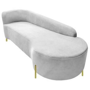 Divã Recamier Orgânico França 200cm Lado Dir Pés Metal Dourado Bouclé Cor Branco