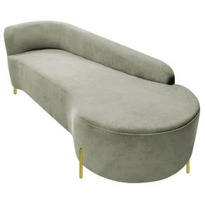 Divã Recamier Orgânico França 200cm Lado Dir Pés Metal Dourado Bouclé Cor Verde Oliva