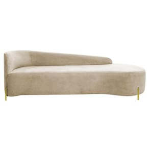 Divã Recamier Orgânico França 220cm Lado Dir Pés Metal Dourado Bouclé Cor Bege