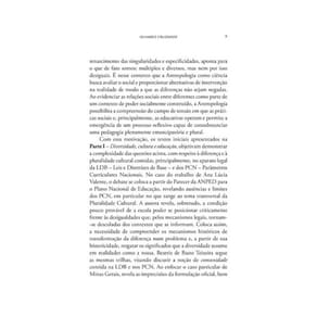 O livro apresenta um conjunto de textos da área de antropologia em que a questão educacional é analisada a partir das concepções de diferença e de pluralidade cultural, segundo as interpretações presentes na Lei de Diretrizes e Bases e nos Parâmetros Curriculares Nacionais do Ensino Fundamental. Questiona-se o universo de significados que a noção de comunidade faz emergir em função de contextos distintos, e a validade do conceito de comunidade escolar tal como proposta nos dispositivos legais. O debate sobre a pluralidade de formação da realidade brasileira ajuda a compreender quem são os chamados outros, os diferentes, com os quais o professor se confronta no seu fazer pedagógico e cotidiano.
