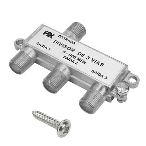 Divisor de antena 1 entrada 3 saidas 5-900 mhz Descrição: - divisor de antena 3 saidas - divisor universal para tv aberta analógica, digital, tv a cabo e parabólicas, com ou sem amplificação. - utilizado para a divisão do sinal para 3 televisores. - uma entrada que será dividida para 3 saídas.