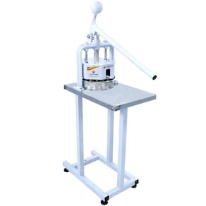 DETALHES - Divide massas em unidades de pão; - Efetua 30 divisões iguais em cada operação; - Mesa. pedestal e carenagem em aço carbono SAE 1020; - Navalha de corte em aço inoxidável; - Mesa revestida em aço inoxiável; - Estrutura. eixo dentado e engrenagem da alavanca em ferro fundido; - Pintura a pó eletrostática com base fosfatizada; - Pedestal opcional; - Máquina com corte redondo da massa. que facilita a operação; - Bandeja em alumínio repuxado; - Produção: 30 pedaços por operação; - Garantia 3 meses legal mais 3 meses pela fábrica.