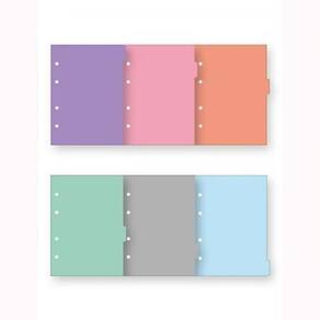 Divisórias no formato college, ideais para a organização e separação de matérias nos cadernos argolados. Possuem impressão nas cores: roxo, rosa, laranja, verde, cinza e azul.