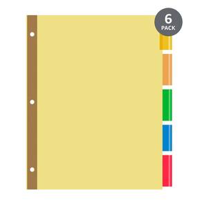 Amazon Basics 3 anéis de divisórias de papel com 5 abas de plástico multicoloridas inseríveis, pacote com 6 conjuntos (30 unidades), madeira - 6 conjuntos de divisórias de documentos de papel duráveis com abas multicoloridas inseríveis; 5 divisórias por conjunto - Ideal para separar informações em relatórios, manuais, apresentações, pesquisas e muito mais - Estrutura de papel branco com abas inseríveis de plástico; pode ser reaproveitado muitas vezes para uma variedade de projetos - Compatível para uso em fichários de 3 anéis; ótimo para documentos de tamanho carta (21,5 x 28 cm) para fazer o gerenciamento de classificação de arquivos - Orifícios de anel de dupla face ajudam a evitar rasgos e proporcionam força reforçada - As abas inseríveis se estendem além das capas das páginas e podem ser substituídas por novos cabeçalhos conforme necessário