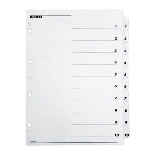 - Marca: Artik - Divisórias com 10 divisões - Possui visor para etiquetas de identificação - Furação universal - Totalmente reciclável e durável - Formato: A4 - Medidas: 297 x 210 mm Comprimento x Largura - Material: Papel Marca: Não Informado