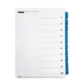 Divisórias para Fichário A4 Artik 10 Divisões C/Visor Números Nome: Números Azul Divisória para Fichário Ofício 10 Divisões C/Visor. Ideal para organizar e identificar matérias escolares, documentos em fichários e pastas.