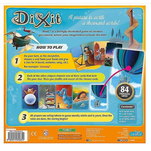 84 Cartões de Imagem 1 Placar 6 Coelhos de madeira 36 Regras de tokens de votação Para 3 a 6 jogadores 30 minutos de tempo de jogo