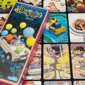 Divirta-se ainda mais usando a expansão Dixit Mirrors. Use as cartas do jogo-base Dixit ou aquelas da expansão. Você também pode misturá-las. O jogo acaba quando o primeiro jogador chegar a 30 pontos no marcador de pontos.