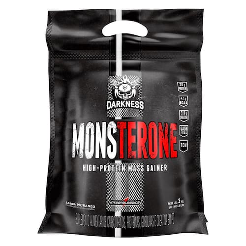 MONSTERONE da INTEGRALMEDICA é um hipercalórico da linha Darkness, combina ingredientes de modo estratégico para auxilar os praticantes mais hardcore da musculação a ganharem massa magra. A formula traz proteinas de alto valor biológico (whey protein) e carboidratos de diferente velocidade de absorção (waxy maize e maltodextrina), que ajudam a suprir a necessidade calórica dos atletas, favorecendo também a síntese muscular. além de TCM (triglicerídeos de cadeia média) e creatina, que fornecem energia e aumento da força e do volume muscular.