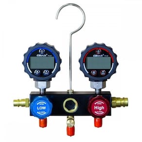 Dmg-1b manifold digital nfaixa de medição pressão:-14,5 800 psinfaixa de umidade:35% a 85% urntemperatura de operação:-10c a 60cnresolução de pressão:0,04 psinresolução de temperatura:0,1cnprecisão de pressão:+-0,5%nprecisão de temperatura:+-1cnfonte de alimentação:bateria tipo botão cr2450 3vnvida útil da bateria:até 06mesesnperíodo de amostragem:1.2snindicador de bateria:indica ndisplay:37x17mm lcd / iluminação verdenunidades de medição:mpa, kpa, bar, psi, kgf/cm, mmhgnalarme de fora de alcance:pressão: ncomponente da estrutura:alumínionválvula de núcleo duplo:2nmangueiras de 1,5mt:3. Pressão min: 800psi; pressão max: 4000psinconector de teste de alta e baixa pressão:-nmanifold digital de alta precisão, para medir alta e baixa pressão. Utilizado paramanutenções e instalações em sistemas de ar condicionado, refrigeração comercial e industrial. Este modelo permite a seleção do gás refrigerante que seráaplicado ao sistema (87 tipos diferentes de gases) bem como a visualização dorespectivo valor de temperatura conforme tabela pxt (pressão x temperatura).