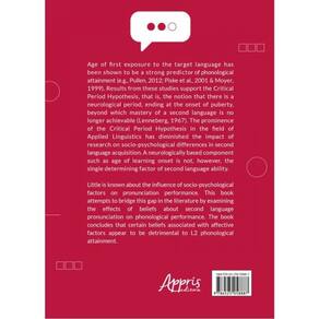 Age of ?rst exposure to the target language has been shown to be a strong predictor of phonological attainment (e.g., Pullen, 2012; Piske et al., 2001 & Moyer, 1999). Results from these studies support the Critical Period Hypothesis, that is, the notion that there is a neurological period, ending at the onset of puberty, beyond which mastery of a second language is no longer achievable (Lenneberg, 1967). The prominence of the Critical Period Hypothesis in the ?eld of Applied Linguistics has diminished the impact of research on socio-psychological differences in second language acquisition. A neurologically based component such as age of learning onset is not, however, the single determining factor of second language ability. Little is known about the in?uence of socio-psychological factors on pronunciation performance. This book attempts to bridge this gap in the literature by examining the effects of beliefs about second language pronunciation on phonological performance. The book concludes that certain beliefs associated with affective factors appear to be detrimental to L2 phonological attainment.
