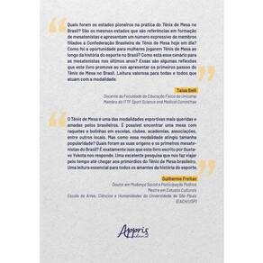 Quais foram os estados pioneiros na prática do Tênis de Mesa no Brasil? São os mesmos estados que são referências em formação de mesatenistas e apresentam um número expressivo de membros filiados à Confederação Brasileira de Tênis de Mesa hoje em dia? Como foi a oportunidade para mulheres jogarem Tênis de Mesa ao longo da história do esporte no Brasil? Como está esse cenário para as mesatenistas nos últimos anos? Essas são algumas reflexões que este livro promove ao nos apresentar os primeiros passos do Tênis de Mesa no Brasil. Leitura valorosa para todas e todos que atuam com a modalidade. Taisa Belli Docente da Faculdade de Educação Física da Unicamp Membro do ITTF Sport Science and Medical Committee O Tênis de Mesa é uma das modalidades esportivas mais queridas e amadas pelos brasileiros. É possível encontrar uma mesa com raquetes e bolinhas em escolas, clubes, academias, associações, entre outros locais. Mas como essa modalidade atingiu tamanha popularidade? Quais foram as suas origens e os primeiros mesatenistas do Brasil? É exatamente isso que este livro escrito por Gustavo Yokota nos responde. Uma excelente pesquisa que nos faz viajar pelo tempo até chegar aos primórdios do Tênis de Mesa brasileiro. Uma leitura essencial para todos os amantes da história do esporte. Guilherme Freitas Doutor em Mudança Social e Participação Política Mestre em Estudos Culturais Escola de Artes, Ciências e Humanidades da USP (EACH/USP)