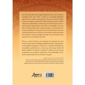 Esta obra trata sobre temas de grande impacto social, como memória e sociedade, tendo como objeto a história da comunidade quilombola Lagoa do Zeca, situada no município de Canarana, no interior da Bahia. A autora avoca para si a missão de recolher narrativas de quatro velhos e velhas da sua comunidade e construir um acervo de base para a preservação da memória daquele lugar. Como filha da comunidade, sua escrita não se restringe à observação e a relato, mas segue o movimento de escrevivência ensinado por Conceição Evaristo: são memórias de si e dos seus, em fala-performance que reverbera as vozes dos que, embora silenciados historicamente, criaram estratégias de manter vivas as narrativas de sua experiência e de sua sabedoria ancestral. Nota-se, a partir da leitura, um movimento de construção de novas memórias, que colocam em diálogo realidades passadas e contemporâneas do quilombo, mostrando as dinâmicas e os desafios enfrentados por comunidades quilombolas em um país que ainda segue devedor de políticas públicas de inclusão e reparação. É também a escrita de uma pesquisadora em construção constante de si, de sua identidade, e fortemente comprometida com seu território e sua gente. Mírian Sumica Carneiro Reis (2023) Doutora em Teoria da Literatura pelo Programa de Pós-graduação em Ciência da Literatura da Universidade Federal do Rio de Janeiro. Diretora da Universidade da Integração Internacional da Lusofonia Afro-brasileira (UNILAB), Campus dos Malês Ean: 9786525052960