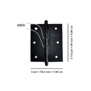 Dobradiça 3 1/2 x 3 preta preto com anel tolemat pino bola jogo cartela 3 peças + parafusos 700515 Jogo de dobradiças 3 1/2 x 3 polegadas com anéis e pino bola. Cada unidade corresponde a uma cartela com 3 dobradiças com anéis + parafusos para fixação. Medidas da dobradiça aberta: 89 mm altura x 76,2 mm largura x 1.7 mm espessura. Pode ser em portas ou janelas, podendo ser de madeira ou metálicas. Marca: tolemat Acabamento: preto fosco Marca: Não Informado Ean: 7891507005154