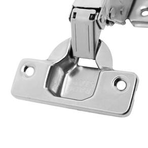 Compatíveis com portas de espessura entre 14mm e 21mm, as Dobradiças Clip On Soft Close Alta são versáteis e se adaptam a uma variedade de móveis. Transforme seus armários e móveis com essas dobradiças de alta qualidade.