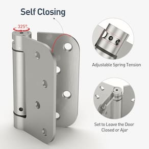 A HOSOM é um fabricante profissional de dobradiças de porta. Estas dobradiças de mola fazem a porta fechar automaticamente, poupando os problemas ao fechar a porta sozinho ou lembrando os outros de fecharem a porta atrás delas. Menor, mais simples e mais bonito do que o fecho volumoso da porta/braços. Você pode usar apenas uma chave de fenda para substituí-las em minutos e usar a chave hexagonal que acompanha para ajustar livremente a força de fechamento que você precisa. O número de dobradiças que você pode precisar: ·Primeiro, certifique-se de que o tamanho é o que você precisa. Estas são de 10 cm. ·Se a porta não tiver mais de 18 kg, uma é recomendada. · Se a porta for de 85 a 45 kg, dois são recomendados. ·Quanto mais pesada a porta, mais dobradiças você precisará. Mas certifique-se de que eles estão ajustados à mesma tensão para uma porta. Atenção: · Vem com parafusos de máquina e parafusos de madeira, para que sejam aplicáveis portas de 3,5 cm e 4,5 cm de espessura. ·Certifique-se de que a porta está em posição fechada ao ajustar a tensão. · Sempre gire a haste de ajuste de tensão ou chave sextavada para a esquerda, independentemente da aplicação da porta direita ou esquerda. · Após o ajuste final, coloque o pino alinhado com o tambor da dobradiça · Você não pode abri-lo automaticamente ajustando a tensão para ser negativo. - ?Ajuste padrão?Estas dobradiças de porta padrão de 10 cm são geralmente aplicadas à porta da sua casa à garagem, porta da frente, porta dos fundos, etc. - ?Fechamento automático?As dobradiças de fechamento automático são carregadas por mola. A força de fechamento é ótima para portas que as pessoas esquecem de fechar. A tensão ajustável faz com que você ajuste livremente para deixar a porta fechada ou entregue. - ?Peso de carga?Um par de dobradiças pode suportar portas de 85 a 45 kg. Um pode suportar até 18 kg. Aplicável a portas destros e canhotos. - ?Qualidade certificada?As dobradiças de mola têm certificação UL ANSI Grau 1. Metal sólido com um acabamento protetor para evitar ferrugem. - ?Fácil de instalar e ajustar?Sem tirar a porta, basta remover a dobradiça antiga e substituí-la uma de cada vez usando apenas uma chave de fenda. A chave sextavada que acompanha permite definir livremente a tensão.