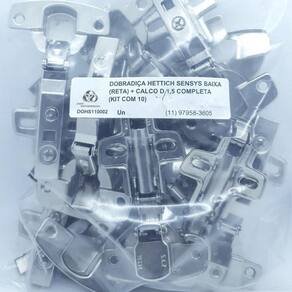 Dobradiça hettich sensys 8645i 110 baixa reta + calco d 1,5 completa kit com 10 - dobradiça com tecnologia de encaixe clip e amortecimento integrado - fabricada na alemanha - classificação de qualidade de acordo com a norma europeia en 15570, nível 3 - para espessuras de portas 15 - 22mm - diâmetro de caneco 35mm - profundidade do caneco 12,8mm - ajuste de cobrimento integrado + 2 mm / - 2 mm - ajuste de profundidade integrado = 3 mm / - 2 mm - ajuste vertical através do calço de montagem - material do braço da dobradiça: aço niquelado - material do caneco da dobradiça: aço niquelado - dobradiça reta baixa para móveis que necessitam de cobrimento total da lateral do móvel - o kit inclui 10 dobradiças sensys, 10 calços sensys, 10 arremates de caneco sensys e 10 arremates de corpo sensys, conjunto completo, produto hettich - não acompanham parafusos de fixação Dobradiça hettich sensys baixa reta + calco d 1,5 completa kit com 10 Marca: Não Informado