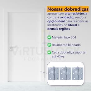 - Acompanha 6 Parafusos De Inox Para Cada Dobradiça;