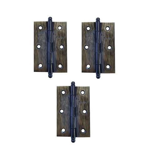 Dobradiça para porta antique ouro velho 3 1/2 tolemat - 3 peças + parafusos Jogo de dobradiças 3 1/2 polegadas com pino bola. Cada unidade corresponde a uma cartela com 3 dobradiças + parafusos para fixação. Medidas da dobradiça aberta: 89 mm altura x 59 mm largura x 1.5 mm espessura. Pode ser em portas ou janelas, podendo ser de madeira ou metálicas. Marca: tolemat Acabamento: antique