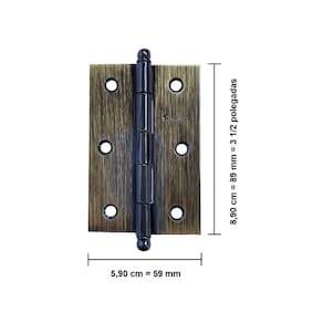 Dobradiça para porta antique ouro velho 3 1/2 tolemat - 3 peças + parafusos Jogo de dobradiças 3 1/2 polegadas com pino bola. Cada unidade corresponde a uma cartela com 3 dobradiças + parafusos para fixação. Medidas da dobradiça aberta: 89 mm altura x 59 mm largura x 1.5 mm espessura. Pode ser em portas ou janelas, podendo ser de madeira ou metálicas. Marca: tolemat Acabamento: antique Marca: Não Informado