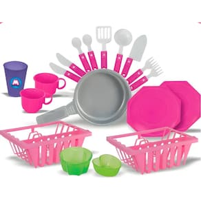 A Doce Cozinha Magic da Magic Toys é a escolha perfeita para estimular a imaginação e criatividade das crianças! Com 93 cm de altura, esta cozinha de brinquedo completa oferece diversas funcionalidades realistas que tornam a brincadeira ainda mais divertida.A pia vem com uma torneira que solta água de verdade, uma lava-louças com escorredor, micro-ondas com porta que abre e fecha, geladeira com prateleira para organizar os brinquedos, um forninho com grelha, e gavetas com porta-talheres.A cozinha também conta com 19 acessórios, incluindo panelas, talheres, xícaras, pires e forminhas, para tornar a brincadeira ainda mais interativaPerfeita para crianças que adoram imitar as atividades da vida real, a Doce Cozinha Magic incentiva a interação social, o desenvolvimento de habilidades motoras e a diversão saudável. Um presente encantador para momentos inesquecíveis de faz de conta!ESPECIFICAÇÕES:- Recomendado a partir de 3 anos- Dimensões aproximadas da embalagem (CLA): 67 x 32 x 69 cm- Altura aproximada da cozinha: 93 cm- Contém: 01 Doce Cozinha Magic, 02 Pires, 02 Xícaras, 02 Colheres, 02 Garfos, 02 Facas, 01 Escumadeira, 01 Facão, 01 Concha, 02 Escorredores, 02 Forminhas, 01 Panela, 01 Copo- Pia com torneira que sai água de verdade- Micro-ondas, geladeira, forninho e gavetas com portas abre e fecha- Muitos acessórios!- Material: Plástico Polipropileno- Marca: Magic Toys- Referência: 7902- Número de registro/certificação INMETRO: 090/2023ATENÇÃO: As cores e detalhes podem variar de acordo com o lote de fabricação em relação às imagens apresentadas.