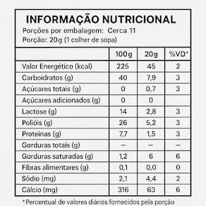 Não contém glúten Alérgicos: contém leite Contém lactose Diabéticos: consumir preferencialmente sob orientação de médico ou nutricionista Este produto pode ter efeito laxativoContém açúcares naturalmente presentes nos ingredientes Não é um alimento com valor energético reduzido