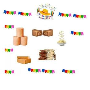 - 3 unidades de Paçoca. - 3 unidades de Doce de Amendoim Formato Liso. - 3 unidades de Cocada. - 1 pacotes de pipoca Popcorn 100 gramas sabor variado - 3 unidades de Pingo de Leite - 3 unidades pé de moleque - 3 chup doce de leite - 3 doce de abobora - 3 pacotes de pipoca doce