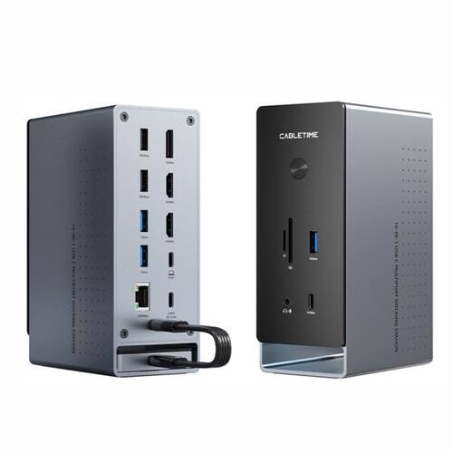 Dock Station Estação De Ancoragem 16 In 1 Cabletime A Dock Station Estação de Ancoragem 16 in 1 Cabletime é a solução ideal para quem busca versatilidade e eficiência em seu espaço de trabalho. Com 16 ranhuras disponíveis, esta estação oferece inúmeras opções de conectividade para todos os seus dispositivos. Seja para o escritório, home office ou entretenimento, a Dock Station proporciona uma organização impecável e um fluxo de trabalho otimizado. A fonte de alimentação garante a energia necessária para todos os seus dispositivos, evitando sobrecargas e permitindo um uso contínuo. Com tecnologia avançada, a estação oferece compatibilidade com uma ampla variedade de aparelhos, facilitando a conexão de múltiplos periféricos ao mesmo tempo. O design moderno e prático da Dock Station Cabletime é perfeito para quem valoriza estética e funcionalidade. Integre toda a sua tecnologia em um único ponto de acesso e transforme sua experiência digital com esta estação de ancoragem inovadora. Experimente a combinação perfeita de desempenho e inovação com a Dock Station Estação de Ancoragem 16 in 1. Maximize a sua produtividade e conecte-se com o que há de melhor em tecnologia. MODELO Nº : CB18G Entrada: USB C Suporte MST Saída: 1HDMI 4K60Hz, 1HDMI 4K30Hz, 1DP 4K60Hz, 2USB-C 3.2 10Gbps, 1USB-A 3.2 10Gbps, 2USB-A 3.0 5Gbps, 2USB-A 2.0 480Mbps, 1SD 3.0,1TF 3.0, 1LAN 1000Mbps, 1USB-C 100W,1Áudio e microfone 3,5mm Material: Alumínio Shell Acessório: Cabo USB C Gen2 1m SKU: CT-DK181-AG do vendedor: 90 dias Marca: Não Informado Ean: 6975285506971