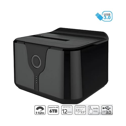 Dock Station para HD e SSD SATA com conexão USB 3.0. Permite acesso, leitura e transferência de dados de forma ágil. Ideal para backup, organização de arquivos e consultas rápidas. Compatível com unidades SATA.Capacidade