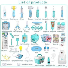 Adequado para desenvolver habilidades motoras básicas Ajude seu filho a reduzir a ansiedade de uma consulta médica com este extenso kit 44pieces. Deixe-os desenvolver suas qualidades nutritivas enquanto aprendem algo sobre as responsabilidades e equipamentos de um médico todos os dias. Com plástico durável, o kit deve durar anos. Se levadas para festas, todas as peças podem ser lavadas depois para manter o kit limpo e livre de germes. Ajudando o vínculo pai-filho e habilidades motoras básicas, o kit é uma escolha para pré-escolares que querem algo mais imaginativo do que um simples carro ou boneca de bebê. Inclui um estetoscópio de trabalho Vem com um estetoscópio que realmente funciona, tampões de silicone macio adequado para os ouvidos das crianças. Deixe seu filho mergulhar completamente em sua imaginação com este conjunto de vestir. Brinquedos não tóxicos garantem a segurança da criançaQualifica os padrões de brinquedos dos EUA com sucesso. Sendo absolutamente livre de BPA, garante a segurança de seus filhos. O kit realista não contém objetos pontiagudos e vem com um benefício adicional de efeitos de luz. Os melhores kits médicos infantis que certamente serão uma ótima opção de presente. Se você está procurando o presente perfeito para uma criança, vá para este. Com um elaborado conjunto de 48 ferramentas médicas e gadgets, este divertido conjunto de brincadeiras médicas é educativo para crianças pequenas.