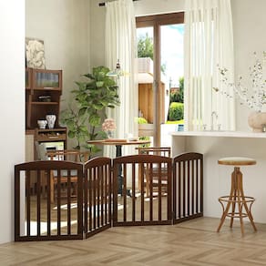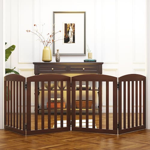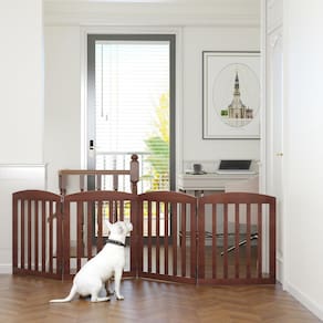 O Portão de Madeira Dobrável para Animais de Estimação SPIRICH é uma opção versátil para encurralar e impedir que seu novo filhote ou gatinho explore muito a casa. Esta cerca para cães de estimação apresenta um design articulado semelhante a um acordeão que permite dobrar nosso portão para cães para caber em quase qualquer porta ou corredor. A peça é feita de madeira resistente com dobradiças de metal duráveis de 8 parafusos de 360 graus. As ripas largas fornecem uma barreira segura sem que seu animal de estimação sinta que está completamente cortado de casa. Escolha a opção de cor da disponível. Características: Construído a partir de dobradiças de metal aprimoradas de 360 graus permitem que você dobre o portão de madeira para cães de qualquer direção. Expande para caber em quase qualquer largura. Chega totalmente montado. Design dobrável e livre Adequado para cães de todos os tamanhos e raças Dobra-se rapidamente para facilitar o armazenamento. Pés de borracha resistentes e antiderrapantes, mantêm seus pisos protegidos contra arranhões Elegante e elegante fica ótimo com uma variedade de estilos de decoração - Simples e resistente: este portão de madeira conversível para cães é uma cerca para animais de estimação, divisor de quarto e caneta para animais de estimação, portão para filhotes, tudo em um. Projetado com um atraente acabamento de madeira natural e pés de borracha antiderrapantes resistentes - Design dobrável e expansível: este portão interno para cães é livre e pode ser dobrado na ampla forma de Z permite que você use o portão para cães em portas, escadas, portas duplas, quartos ou qualquer lugar da sua casa sem necessidade de perfuração - Fácil de montar e armazenar: este portão para portas para cães é reforçado com 8 parafusos para dobradiça giratória de 360 graus extra resistente, permitindo que você abra ou feche nosso portão independente de qualquer direção. E o portão interno para animais de estimação se desdobra rapidamente como um acordeão - Sem necessidade de montagem: nosso portão para escadas já vem completamente montado. Quando o seu cão entra nele, este portão de porta para cães é pesado o suficiente para permanecer no lugar, mas leve o suficiente para se mover facilmente - EXTRA LARGO E ALTO: Aberto DEMS: 96 L x 0,75 P x 28 A DEMES COLAPSADAS: 24,6 L x 8,2 P x 71 A Comprimento utilizável: 221 cm. Nosso portão é adequado para cães pequenos a grandes, como labradores, buldogues, dachshunds e muito mais