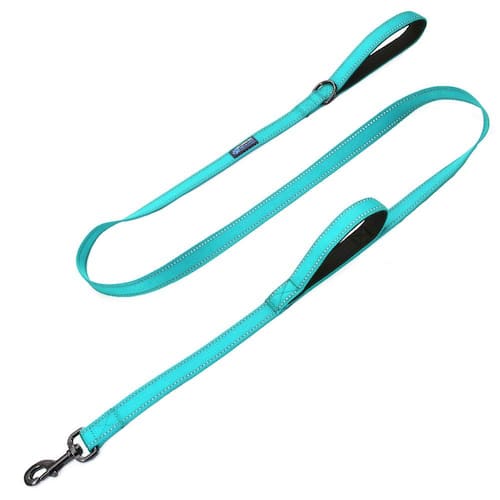 - CARACTERÍSTICAS DE ALTA FINAL: Duas alças acolchoadas de neoprene macio. Uma localizada a 45,7 cm do fecho. Ótimo para quando você precisa manter seu cão mais perto de você no trânsito, aulas de obediência ou perto de outras pessoas. A segunda alça acolchoada na extremidade para conforto contra o pulso. Anel em D perto da alça para prender sacos de cocô ou outros acessórios. Fecho de metal resistente de qualidade. Costura reflexiva para melhorar sua visibilidade à noite.